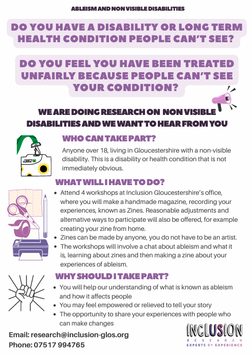 Our research team at Inclusion Gloucestershire are proud to lead on research which is important to the lives of disabled people in Gloucestershire.